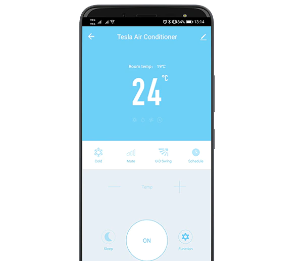 Functia Wi-Fi inseamna ca aparatul de aer conditionat Tesla poate fi controlat si cu smartphone-ul sau alte dispozitive inteligente. Va ofera confort si flexibilitate si va ajuta sa nu mai pierdeti timp in cautarea telecomenzii care a cazut in spatele canapelei!