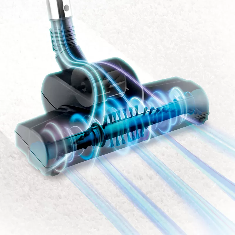 Curatarea covoarelor poate fi dificila. Peria turbo indeparteaza fibrele, firele si parul de pe covoare. Datorita periei sale rotative de inalta viteza, fibrele comprimate si aplatizate sunt indreptate, iar curatarea covorului este mai eficienta.