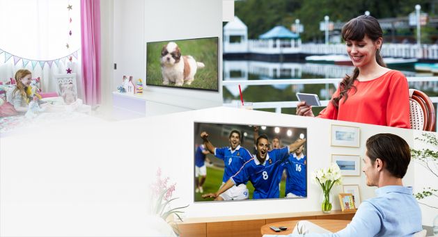 S-au dus zilele cand televizoarele trebuiau asezate langa prizele de antena. Televizoarele setate in modul In-House TV Streaming Clients pot receptiona transmisii in flux (prin LAN, adaptoare de retea electrica sau chiar prin Wi-Fi) daca un server In-House TV Streaming a facut conversia acestora in semnale de protocol internet. Adaugati sistemul TV Anywhere si puteti accesa chiar si transmisiunile cu conversie atunci cand nu sunteti in casa