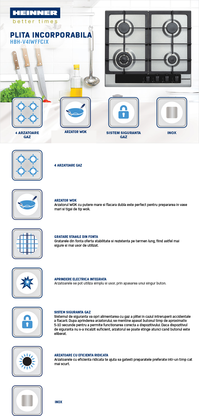 Plita pe gaz Heinner HBH-V4IWFFCIX Inox