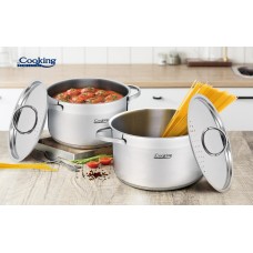 4 PIECE STAINLESS STEEL COOKING SET, ALEIDA 1 x OALA CU CAPAC 20x11.5cm, 3.5L 1 xOALA CU CAPAC 24X13.5cm, 6L