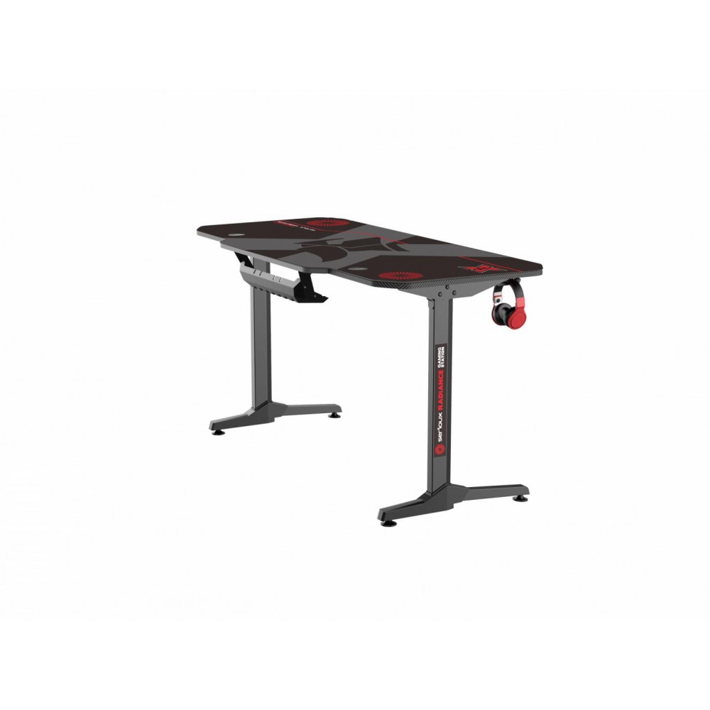 material otel carbon laminat, grosime 1.5mm, blat MDF invelit in fibra de carbon, dimensiuni blat: 1400*660* 15mm, mousepad pe intreaga suprafata a blatului(rezistent la apa), dimensiuni mouse pad: 1400*660*2mm, suport casti, suport cana/pahar, sistem management cabluri, picioare reglabile manual, greutate maxima admisa: 100KG, rosu