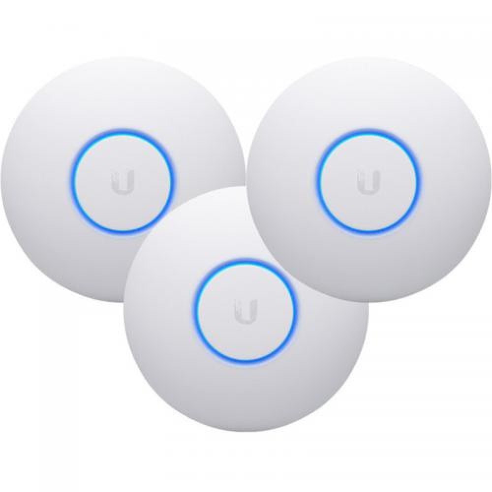 Ubiquiti UniFi Acess Point Wave 2 Hi-Density UAP-nanoHD-3,3 pack, 1x Gigabit LAN, AC2100 (300+1733Mbps), 2x2 MIMO 2.4GHz, 4x4 MIMO 5GHz, Indoor, 802.3af PoE, 10.5W, Recommended Maximum Number of Users=125, Theoretical Maximum Number of Users=200, Wireless Uplink, DFS Certification, kit de montare pe tavan sau perete inclus.
