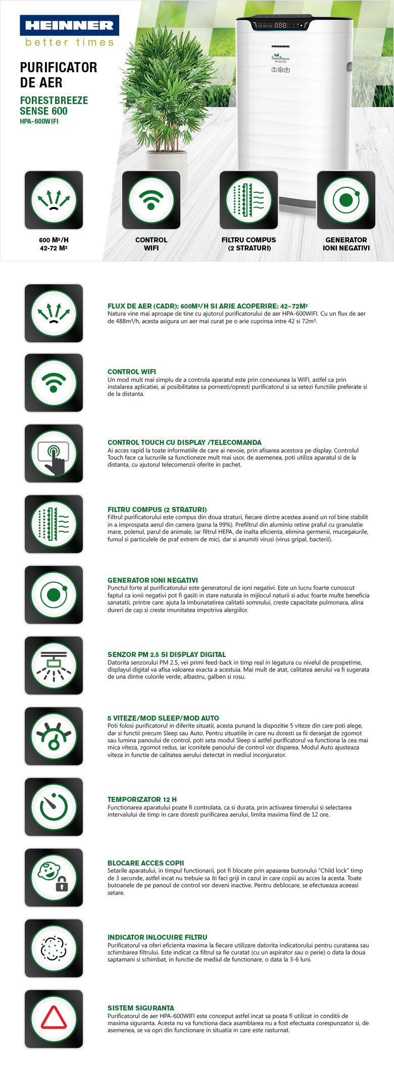 Purificator de aer Heinner HPA-600WIFI