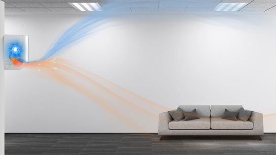 Datorita flapsului de mari dimensiuni, care crează un efect Coandă, aparatul de aer condiționat ALIZEE Pro AW18IT2, generează un flux de aer distribuit uniform şi larg, de sus în jos, ca un duş de aer rece, în modul de răcire, şi de jos în sus, ca o pătură de aer cald, în modul de încălzire.