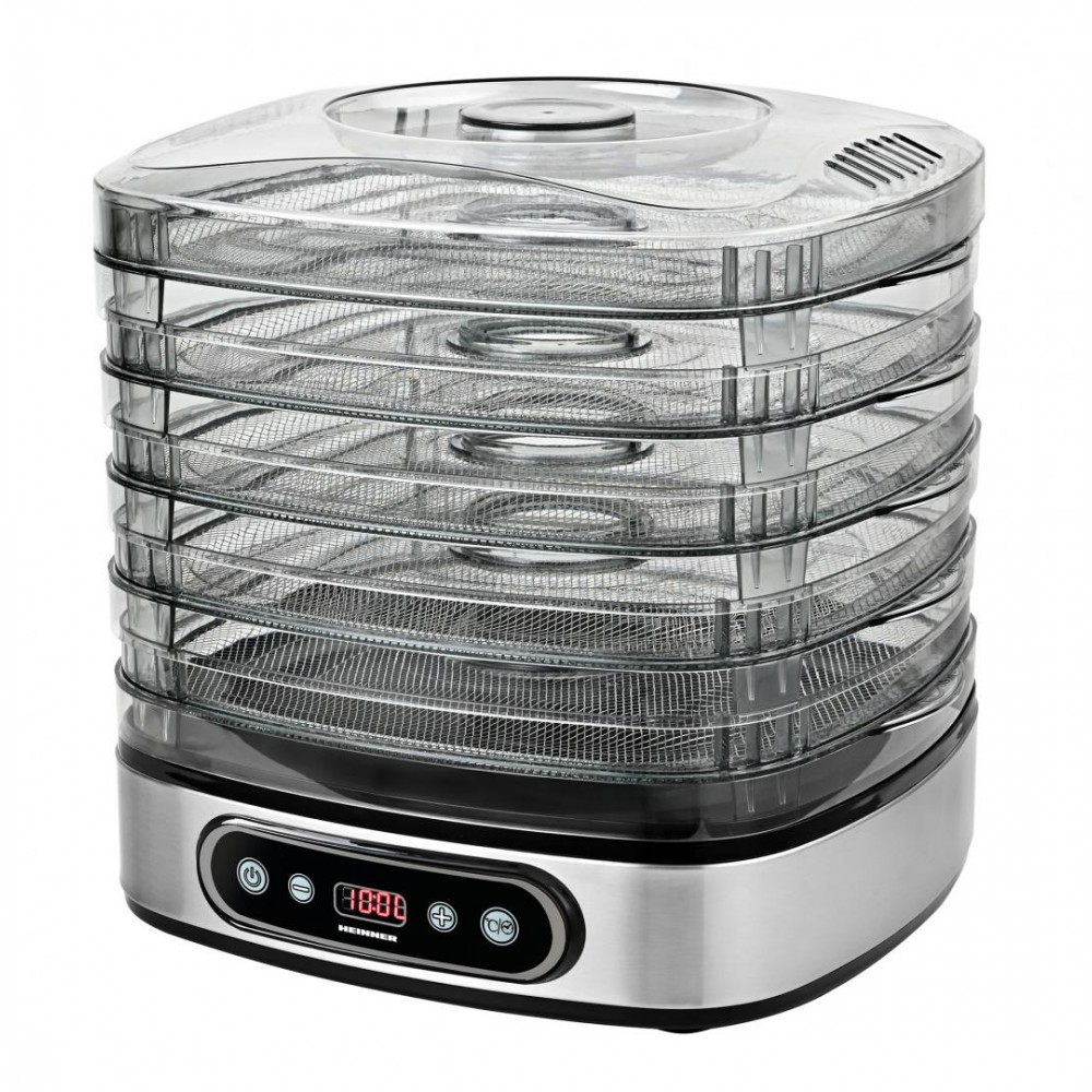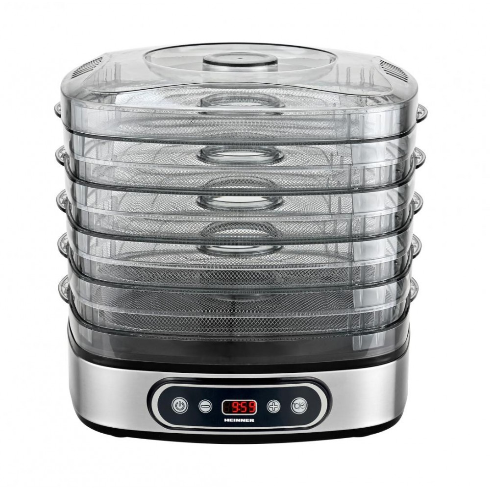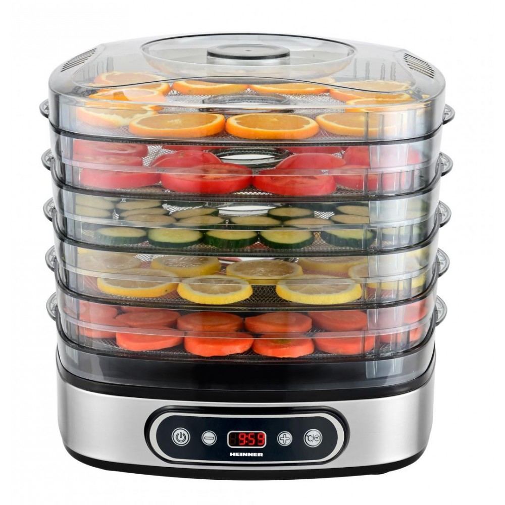 DESHIDRATOR DE FRUCTE SI LEGUME HEINNER FreshDehydrate HFD-K380SSBK,PUTERE: 320-380W, ECRAN LED & CONTROL ELECTRONIC, 5 TAVI DIN OTEL INOXIDABIL, TEMPERATURA: 35-70C, TIMER: 30 MIN - 19.30H, PROTECTIE IMPOTRIVA SUPRAINCALZIRII, INALTIME REGLABILA, DECORATIUNI DIN INOX