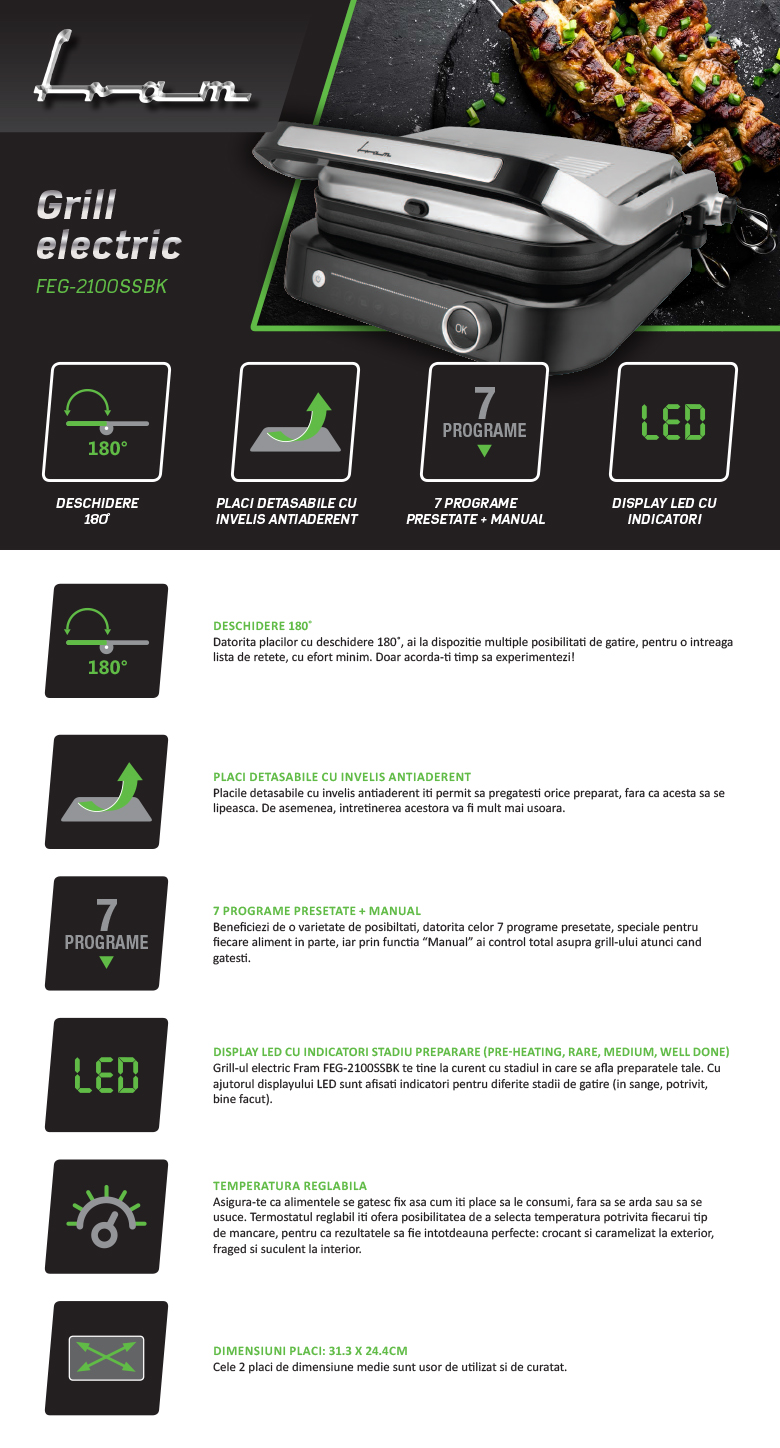 Gratar electric Fram FEG-2100SSBK  2100W Gratar electric Fram FEG-2100SSBK  2100W