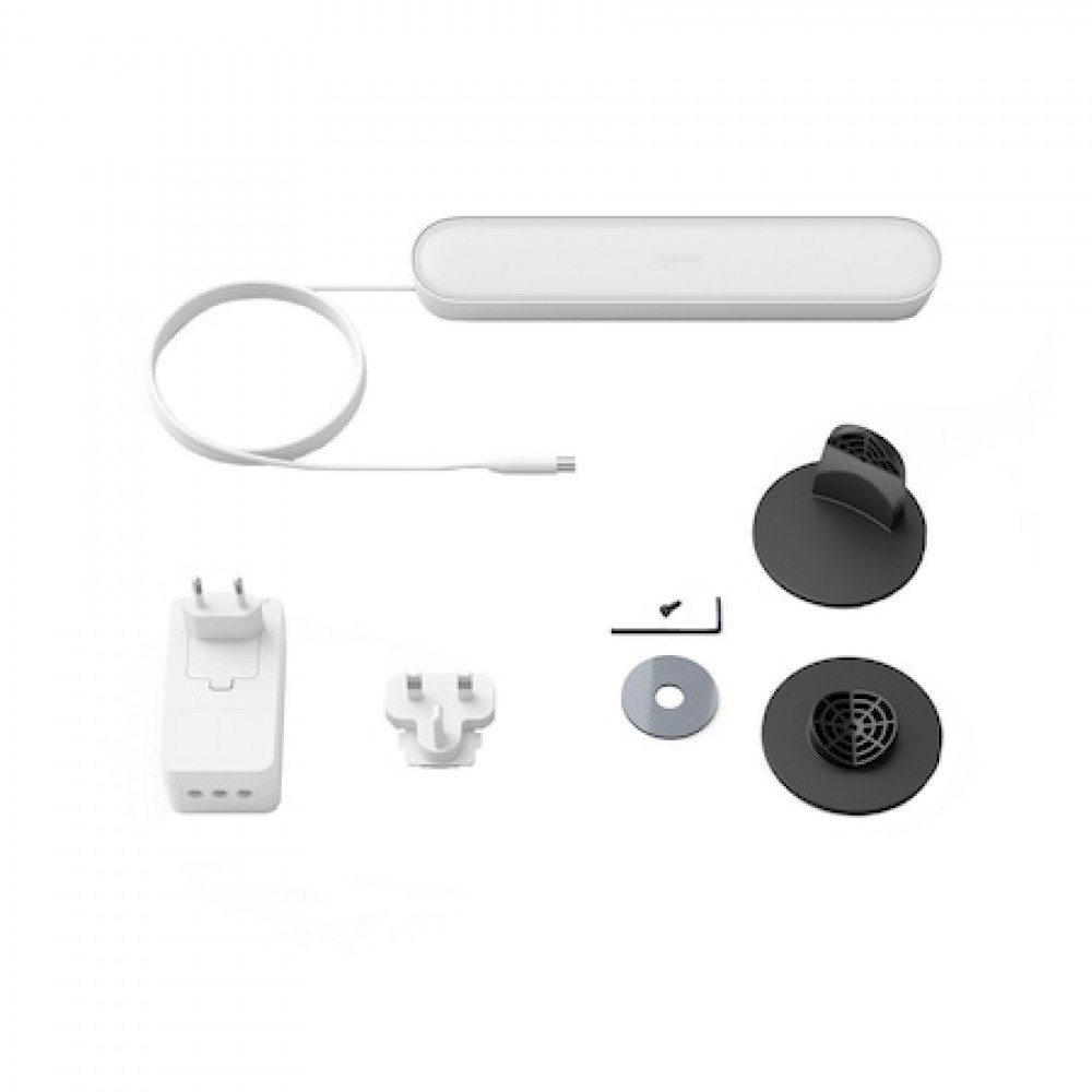 Montati bara luminoasa inteligenta Philips Hue Play in spatele ecranului folosind clemele incluse si banda cu doua fete pentru a crea instantaneu o lumina de fundal aspectuoasa, in culoarea dorita.