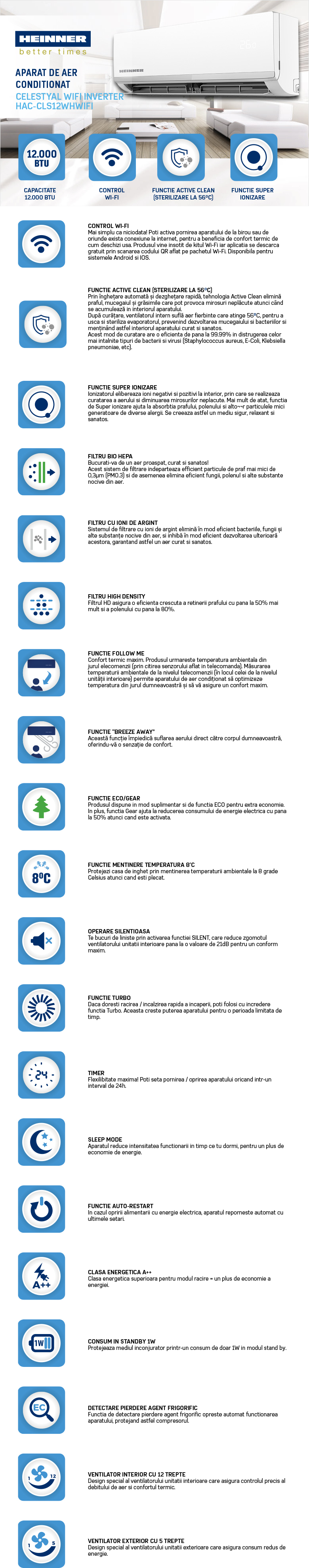 Aer condiționat Heinner Celestyal R32 inverter HAC-CLS12WHWIFI 12000Btu WiFi