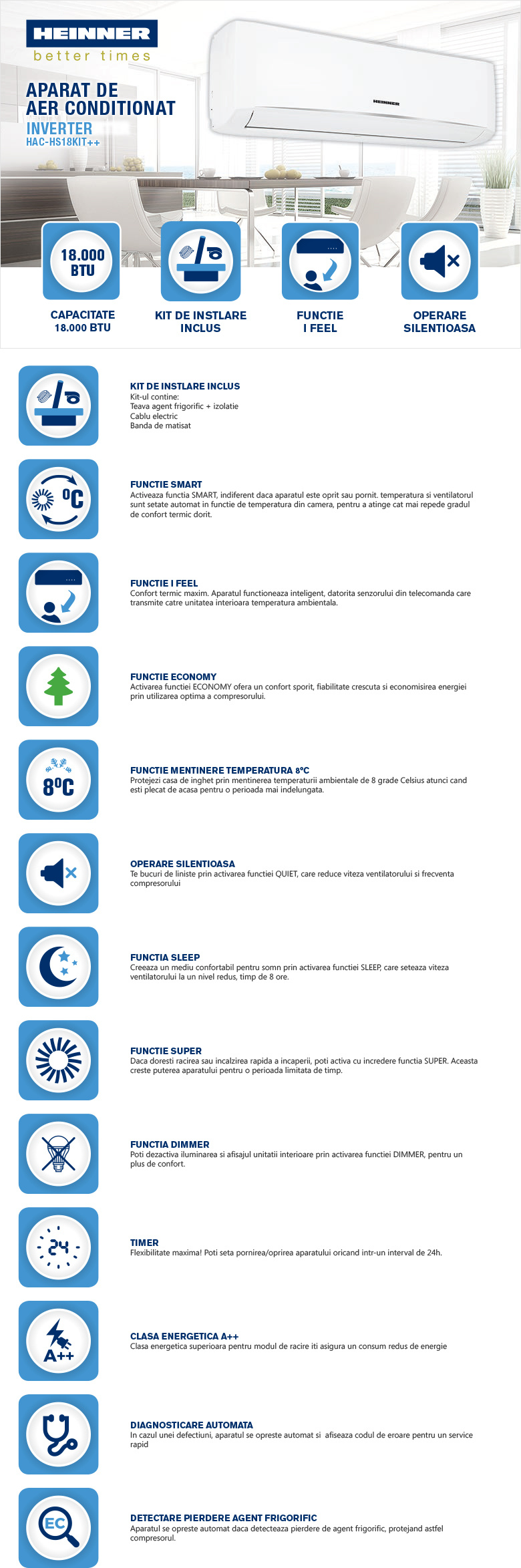 Aer conditionat Heinner R32 inverter HAC-HS18KIT++ 18000Btu + KIT