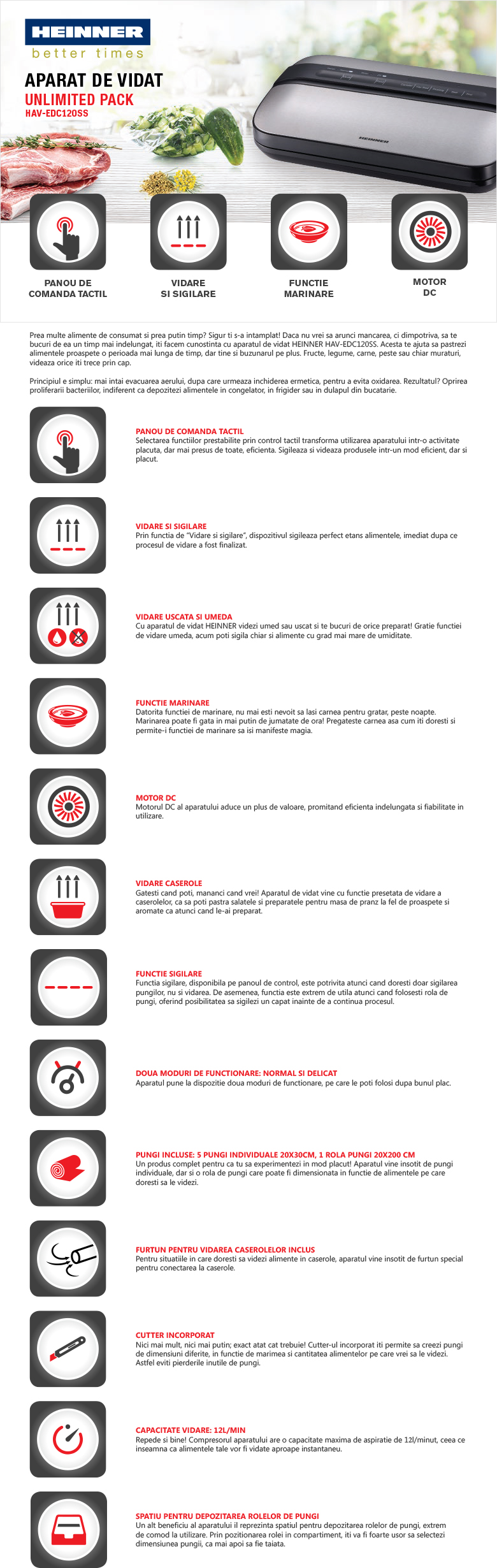 Aparat de vidat si sigilat Heinner Infinity Pack HAV-EDC120SS
