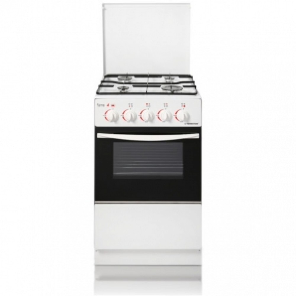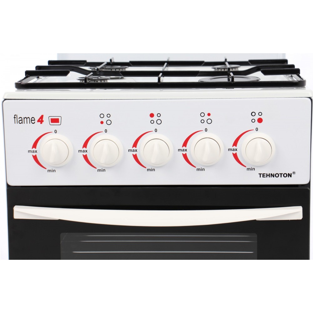 Aragaz Tehnoton, 4 arzatoare, plita gaz, cuptor gaz, 46x50x82, accesorii: tava, gratar, set ajutaje de schimb, cot racord, dispozitiv de siguranta, emailat, alb