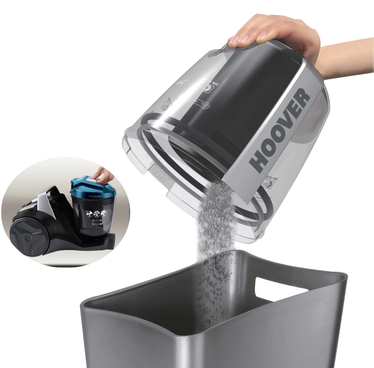 Hoover Breeze BR22PAR 01 are tehnologie ciclonica, astfel murdaria este aspirata intr-un recipient special si apoi separata de aer. Chiar si cele mai mici particule cum ar fi polenul si alergenii sunt prinsi de filtrul EPA lavabil si nu scapa in afara dispozitivului. Datorita acestei tehnologii, puterea dispozitivului este mentinuta constanta indiferent de nivelul de umplere a rezervorului. Capacitatea rezervorului este de 2 l.