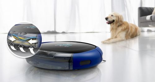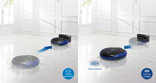 Când încărcătura bateriei scade, aparatul se deplasează automat la stație pentru a se reîncărca. Odată încărcat revine la ultima sa poziție și continuă curățenia.