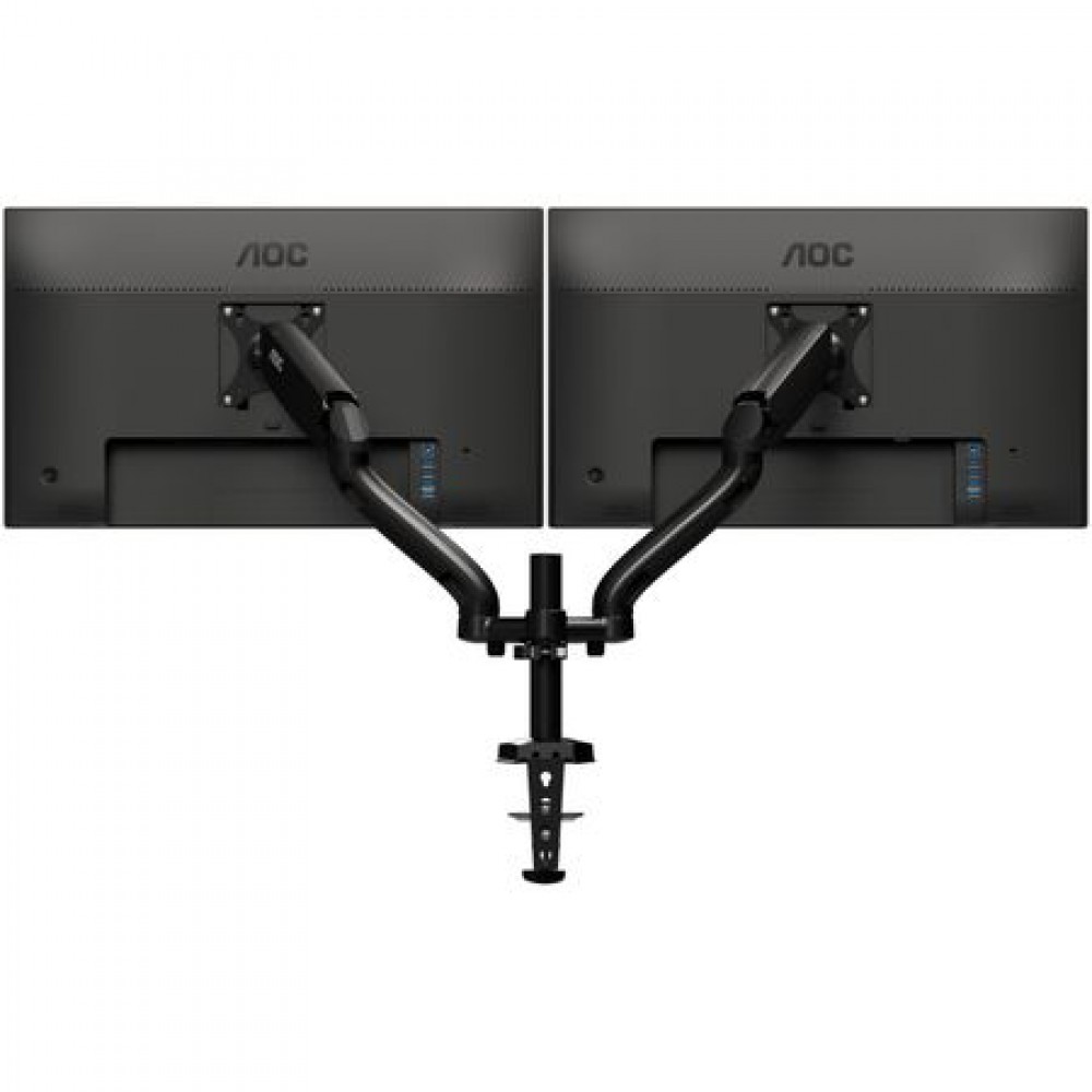 Brat sustinere AD110D0 AOC 2 monitoare cu dimensiune maxima 27", fixare de birou, pivot 360gr, raza larga de inclinare, flexibilitate, inaltime 230 mm, material aluminiu, culoare negru.