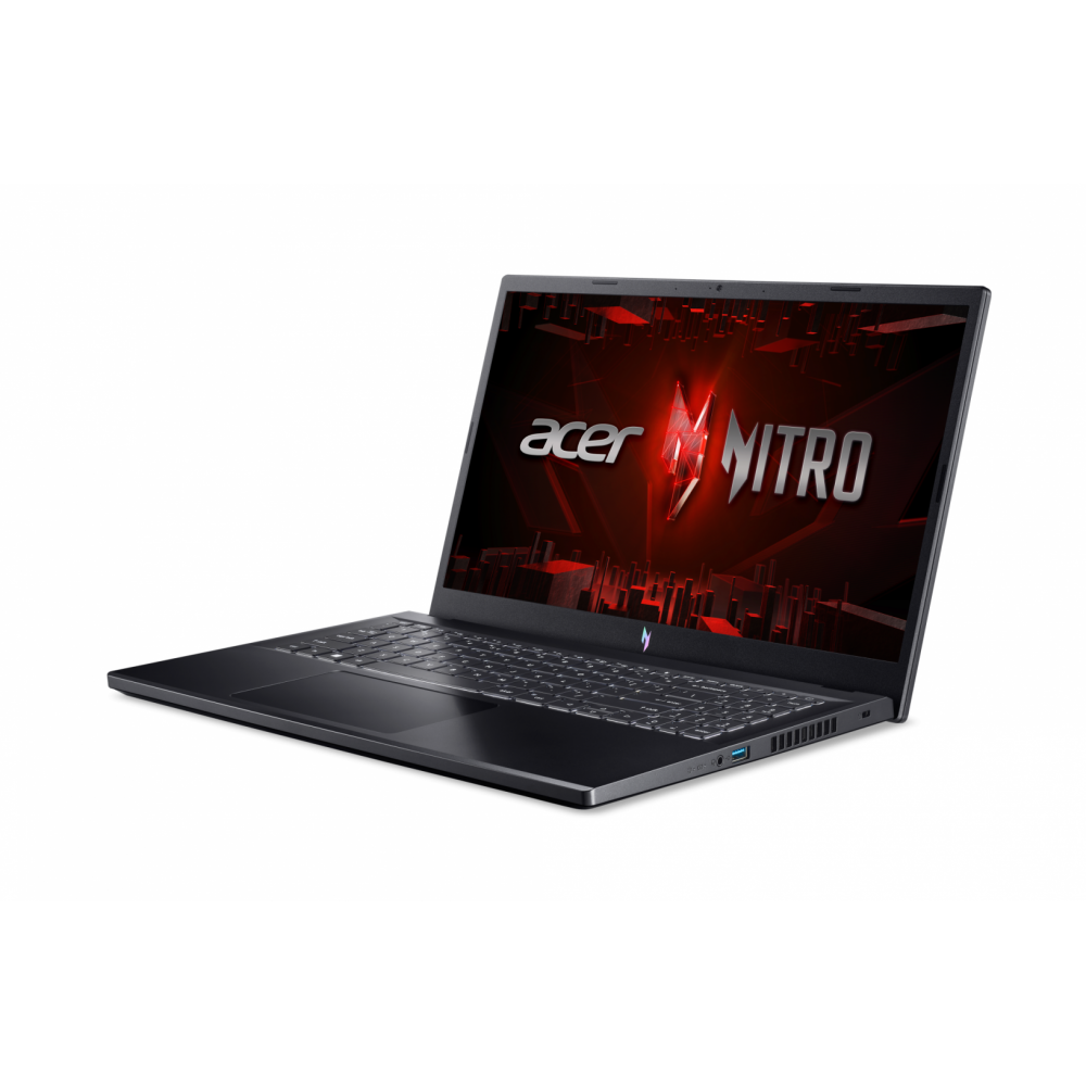 Laptop Acer Gaming Nitro V 15ANV15-51, 15.6" display with IPS (In-Plane Switching) technology, Full HD 1920 x 1080, Acer ComfyView™ LED-backlit TFT LCD, 16:9 aspect ratio, supporting 144 Hz refresh rate, Wide viewing angle up to 170 degrees, Ultra-slim design, Mercury free, environment friendly, Intel® Core™ i5-13420H, 8C (4P + 4E) / 12T, P-core up to 4.6GHz, E-core up to 3.4GHz, 12MB, video NVIDIA® Geforce RTX™ 2050 4GB GDDR6, Boost Clock 1477MHz, RAM 16GB DDR5 Memory, SSD 512GB SSD, no ODD, No Card reader, DTS® X:Ultra Audio, featuring optimized Bass, Loudness, Speaker Protection with up to 6 custom content modes by smart amplifier, 2 built-in stereo speakers, Video conferencing : UFC with T-Type HD camera, Compatible with Windows only, 1280 x 720 resolution,720p HD video at 30 fps with Temporal Noise Reduction, Gigabit Ethernet, WLAN Dual Band (2.4 GHz and 5 GHz), 802.11a/b/g/n/ac+ax wireless LAN, 2x2 MU-MIMO technology, Bluetooth 5.2, No Fingerprint reader, Porturi: 1x USB Type-C Gen 2/ 3x USB Type-A Gen 1/ 1x (HDMI 2.1 with HDCP support)/ DisplayPort (via USB Type-C)/ 1x RJ-45/ 1x headphone/speaker jack, adaptor 135W, Baterie 57Wh Li-ion, Backlit Keyboard US International, Obsidian Black, Greutate 2.1 kg, Dimensiuni 362.3 (W) x 239.9 (D) x 27 (H) mm, No OS (Boot-up only)