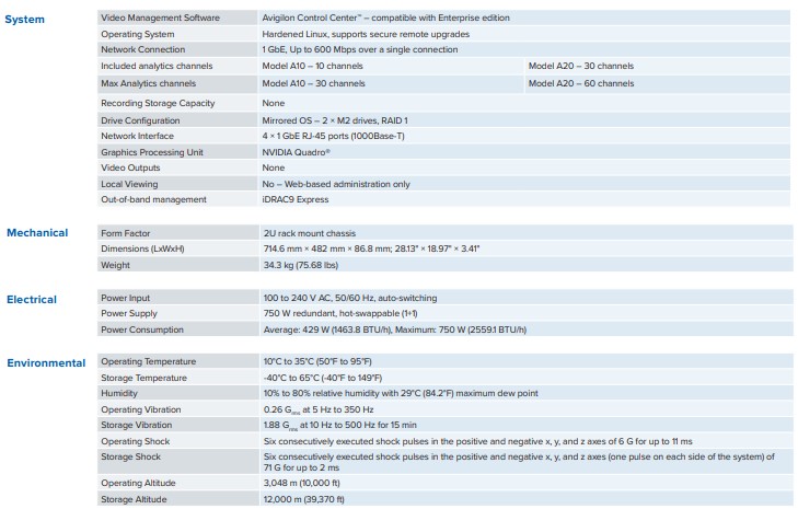 NVR Avigilon Artificial Intelligence Appliance A10 Model 32 channel video