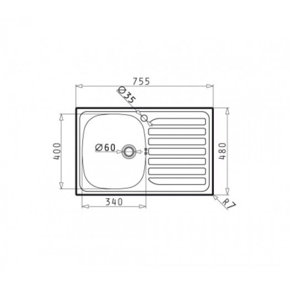 General chiuveta bucatarie Pyramis inox CRETA Flat 75,5x48 1B 1D LN ST:
