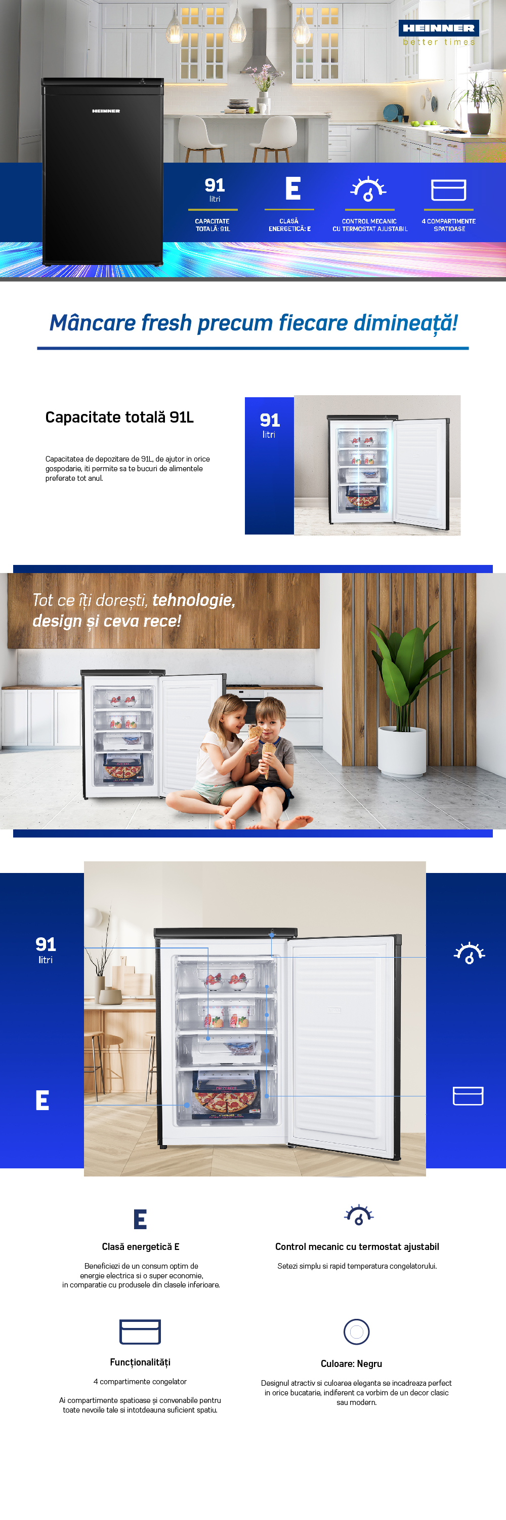 clasa energetica: E, capacitate totala: 91L, control mecanic cu termostat ajustabil,