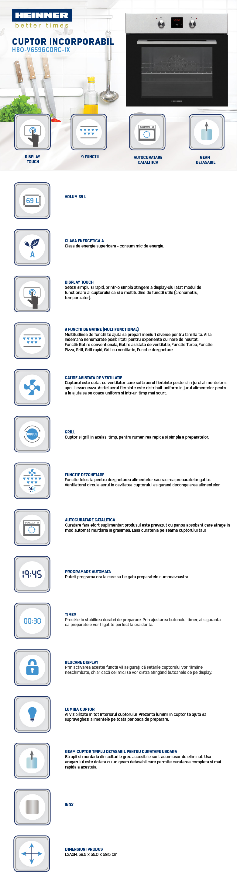 Cuptor electric Heinner HBO-V659GCDRC-IX