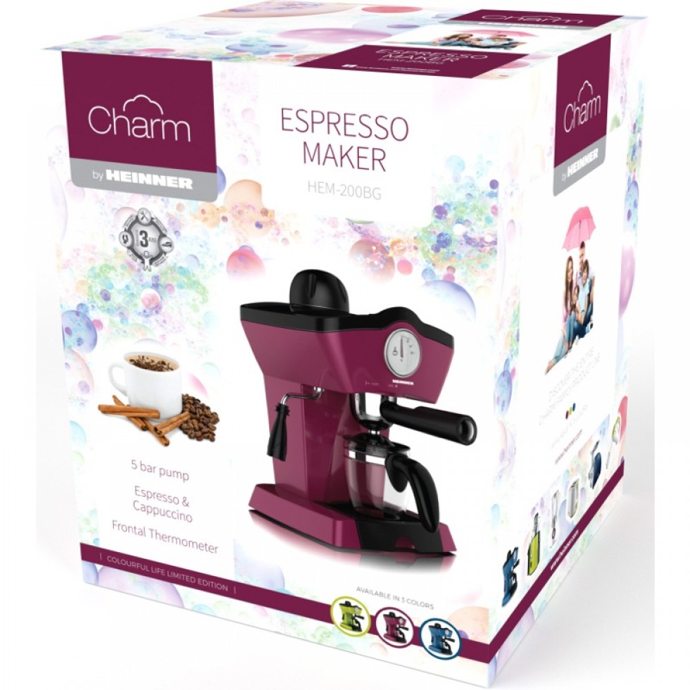 HEM-200BGEspressor Heinner CHARM HEM-200BG, putere: 800 W, capacitate rezervor detasabil transparent : 250 ml,