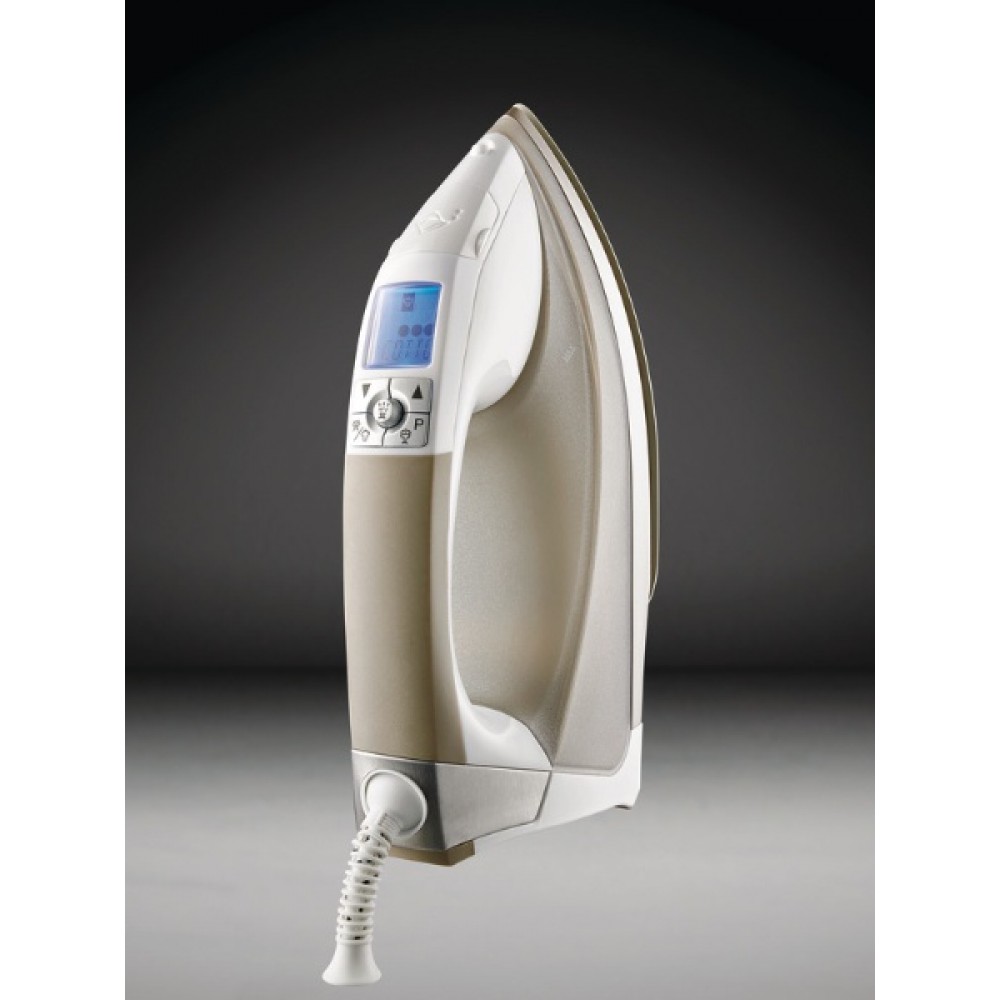 FIER DE CALCAT 2400W, AFISAJ DIGITAL CU INDICATOR AL TEMPERATURII, SISTEM ANTI PICURARE, DEBIT DE ABUR CONTINUU 160G/MINUT, CALCARE VERTICALA, MANER CAUCIUCAT, OPRIRE AUTMATA, BEIGE.