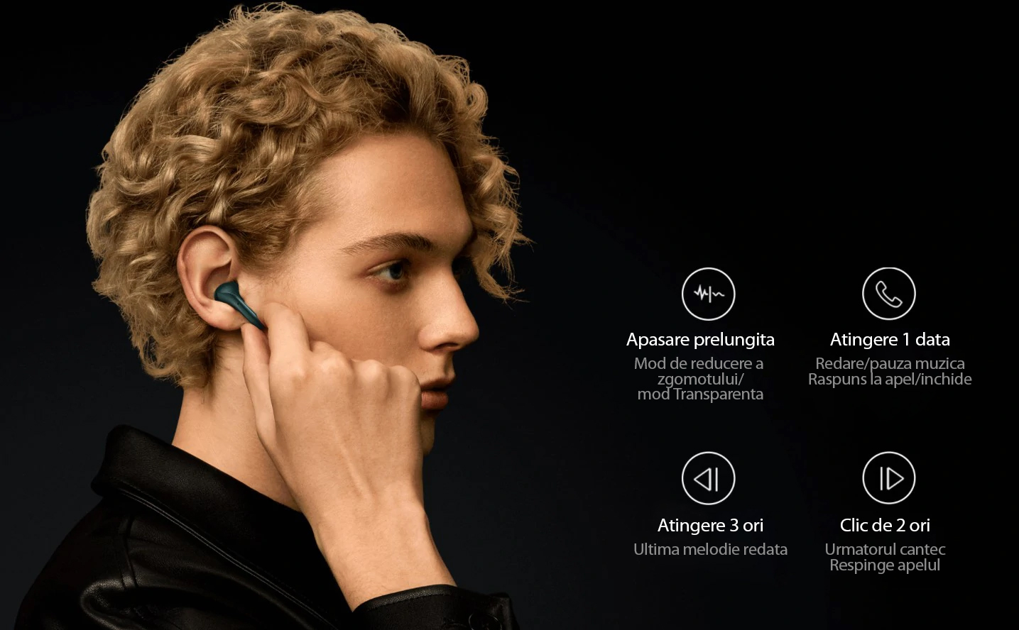In modul transparent, te poti bucura de muzica fara a pierde sunetul ambiental.