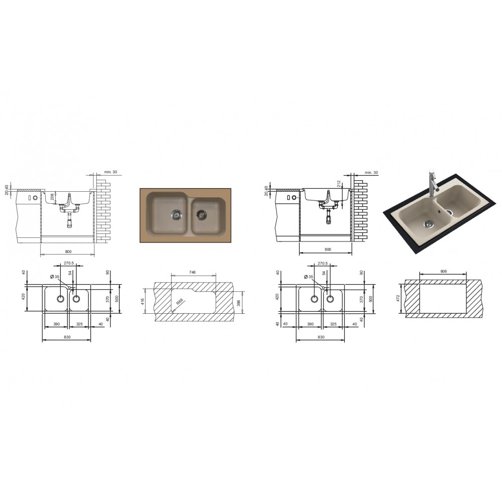 Chiuveta pentru bucatarie soft compozit Pyramis Twin Durothek 1&3/4B