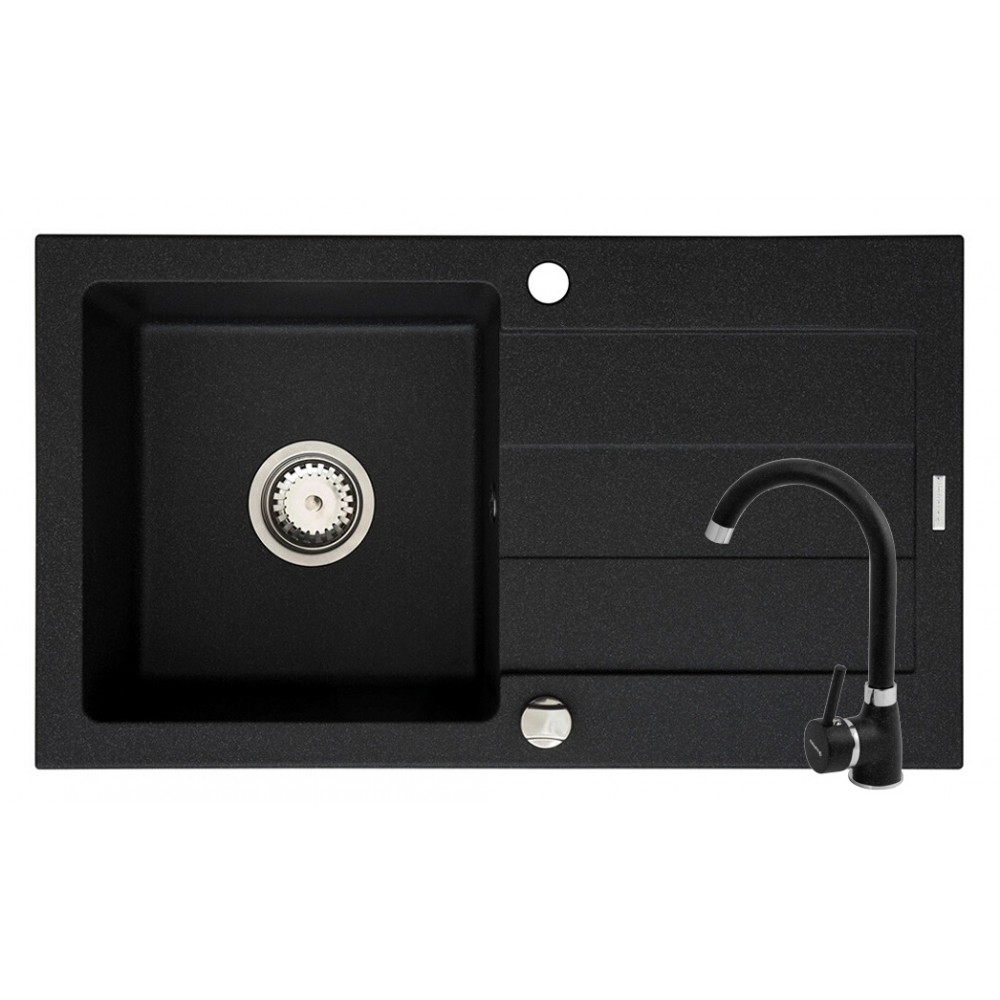 Set Pyramis granit chiuveta bucatarie Sparta 1B 1D + baterie Bello - BLACK