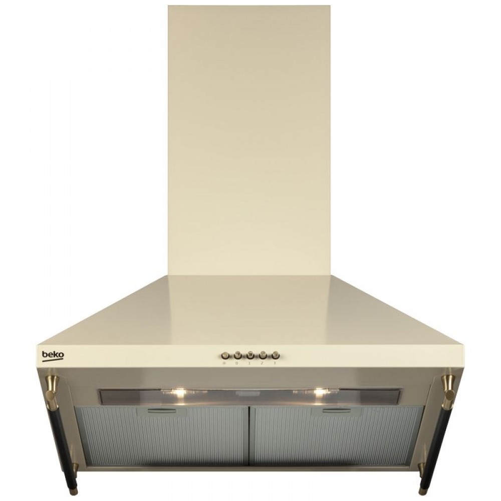 Hota de bucatarie Beko CWB6410CR, Chimney wall mounted, 1 motor 150W, 3 trepte de viteza, 2 lampi iluminare 25W, 2 filtre anti-grasime, lavabile, 60 cm latime, clasa energetica E, culoare crem