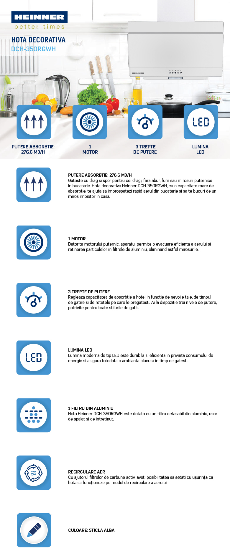 Hota decorativa Heinner DCH-350RGWH