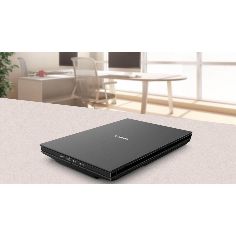 Scanner Canon Lide 300, dimensiune A4, tip flatbed, viteza scanare 2,2 msec./linie (300dpi), 14.8 msec./linie (2400 dpi), rezolutie optica 2400 x 4800dpi, senzor CIS, 4 butoane (PDF, AUTOSCAN, COPY, SEND), interfata: USB 2.0.
