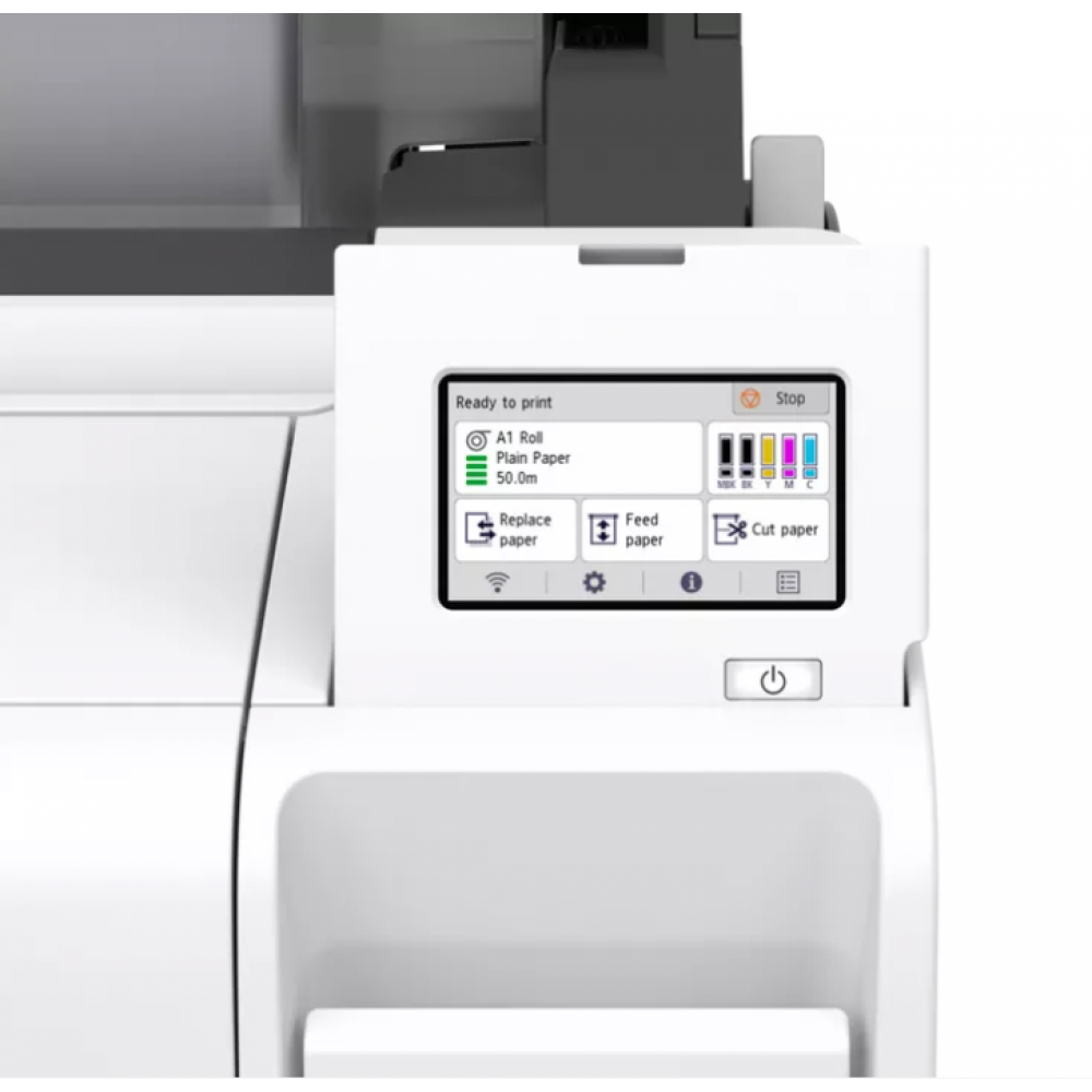 Plotter Canon imagePROGRAF TM-240 24"(610mm), format A1, 5 culori, rezolutie max 2400x1200dpi, memorie 2GB, limbaje de imprimare: HP-GL/2, HP RTL, JPEG (Ver. JFIF 1.02), CALS G4 (submission via FTP only)), display LCD 4.3", interfata: USB 2.0, Ethernet,WIFI consumabile: M: PFI-031(55ml), MBK/BK/C/Y: PFI-030(55ml), print head PF-06, maintenance cartridge MC-31, Cutter Blade: CT-08 Accesorii optionale: printer stand SD-24, roll holder RH2-28. Se livreaza cu cartuse starter.