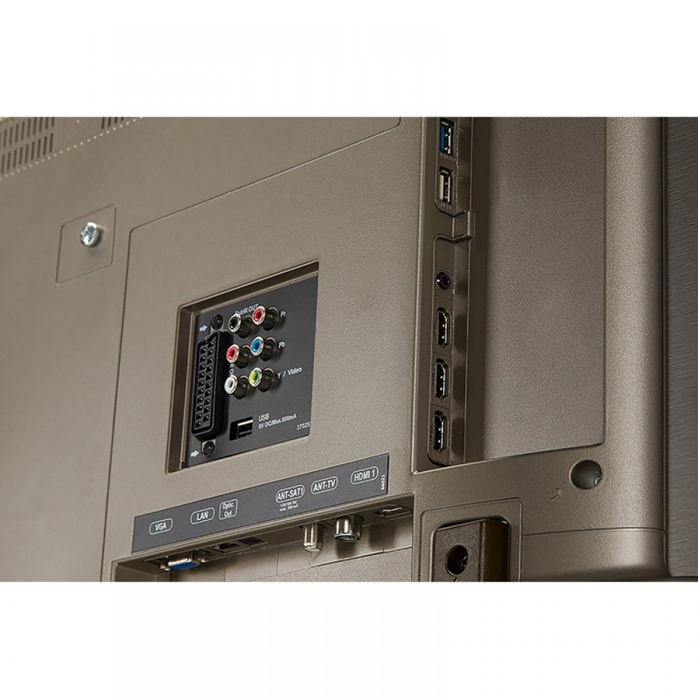 D-SUB SCART AV Digital Audio (Coaxial) DLNA CI+ USB 4 X HDMI RF 1x Headphone out RJ-45 |