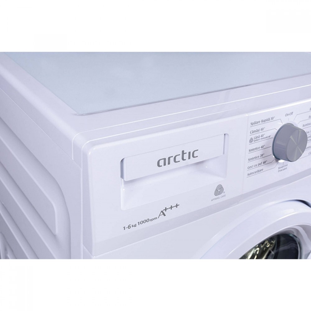 Masina de spalat rufe Arctic APL61012BDW1, culoare 6 kg, turatie 1000 RPM, clasa energetica A+++, butoane gri, alb
