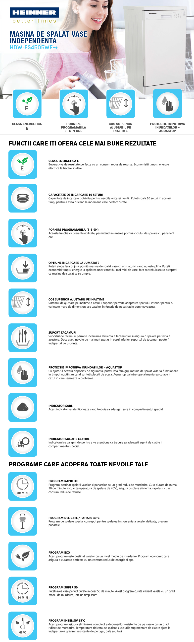 Bucurati-va de rezultate perfecte cu un consum redus de resurse. Economisiti timp si energie electrica la fiecare spalare.