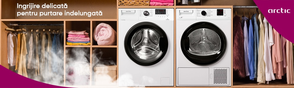 Datorita functiei speciale Add-In a masinii de spalat rufe Arctic puteti adauga orice articol de care ati uitat in primele 5 minute ale ciclului de spalare ales. Selectezi butonul pauza, adaugi articolele de imbracaminte uitate si reactivezi butonul pornire/pauza pentru continuarea ciclului de spalare.