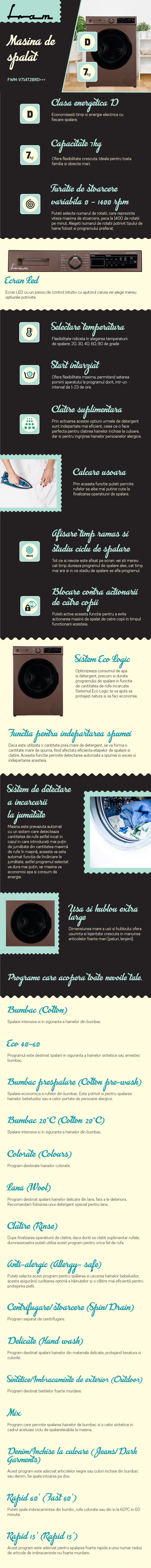 Clatire suplimentara Functie anti-sifonare Functie start intarziat (1-23h) Incarcare la jumatate Selector viteza centrifugare Selector temperatura de spalare Afisare timp ramas si stadiu ciclu de spalare Functia pentru indepartarea spumei |