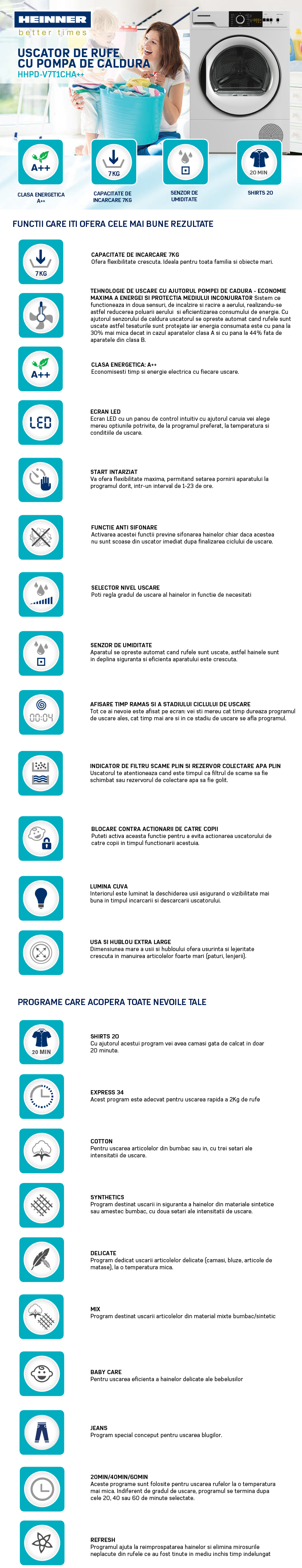 Uscator de rufe cu pompa de caldura Heinner HHPD-V7T1CHA++