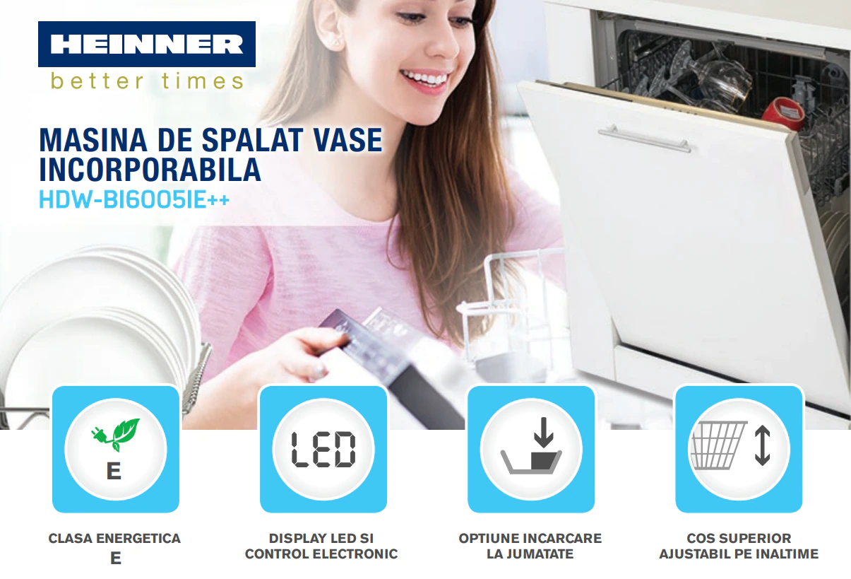 Masina de spalat vase incorporabila Heinner HDW-BI6005IE++ 12 Seturi