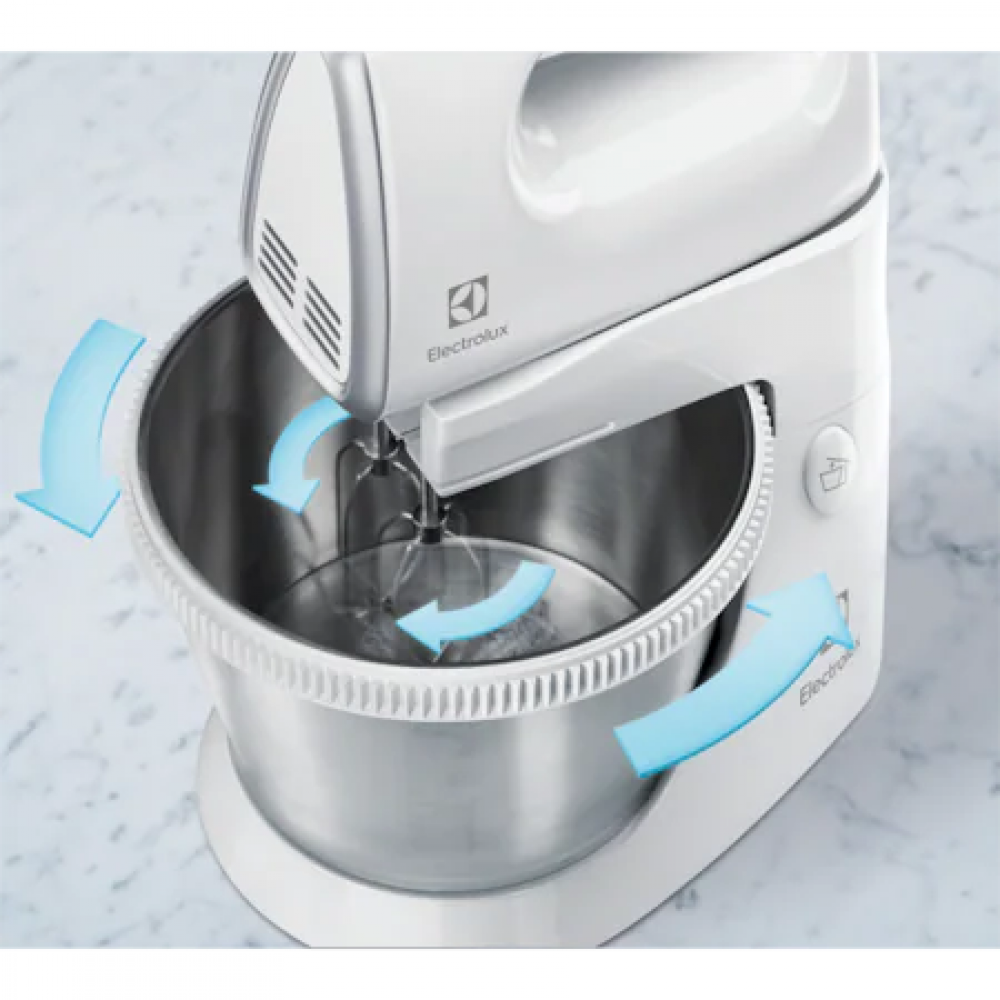 De acum puteti amesteca aluatul, sa bateti albusul de ou si sa framantati compozitia amestecului mult mai simplu si usor. Un aparat nelipsit din orice bucatarie, mixerul cu bol rotativ Electrolux minimizeaza efortul de preparare al aluaturilor si cremelor.