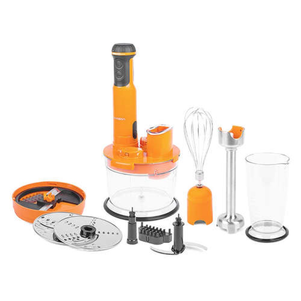 Mixer 6 in 1, care face piureuri, amesteca, toaca cu usurinta, razuieste si toaca, taie in cubulete si nu aluneca din mana, datorita manerului acoperit cu cauciuc "Sot Touch"