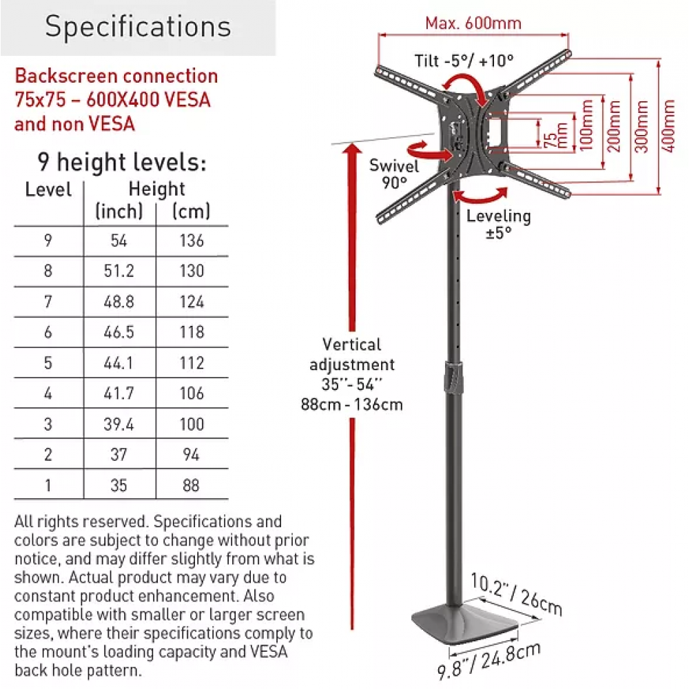 Suport TV de podea Barkan FS420 13-83", Fix, Max 50Kg, VESA 600x400, negru