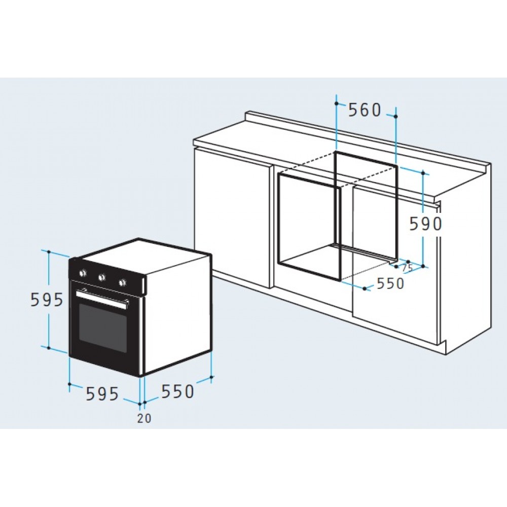Ventilator tangential de racire. Cuptorul este prevazut cu un sistem care raceste partile exterioare ale acestuia, asigurand o utilizare in deplina siguranta.