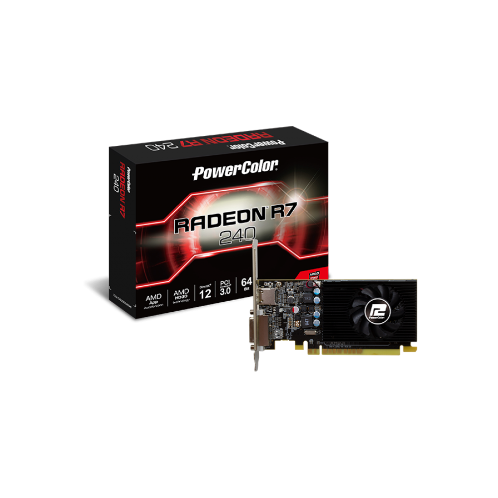 Placa video PowerColor AMD Radeon R7 240 2GB 64BIT GDDR5 PECIFICATION Graphics Engine AXR7 240 2GBD5-HLEV2 Video Memory 2GB GDDR5 Stream Processor 320 Units Engine Clock(OC) Engine Clock(STD/Silent) up to 780MHz with boost Memory Clock 1150MHz (4.6Gbps) Memory Interface 64-bit DirectX® Support 12 Bus Standard PCIE 3.0 Standard Display Connectors DVI-D + HDMI.