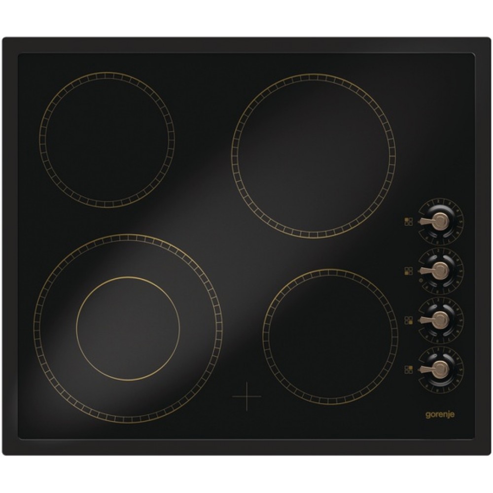 Plita incorporabila electrica Gorenje Classico Collection ECK63CLB, suport vitroceramic, 4 zone incalzire (1 ZONA DUBLA), control mecanic, INDICATOR DE CLADURA REZIDUALA, RAMA NEAGRA