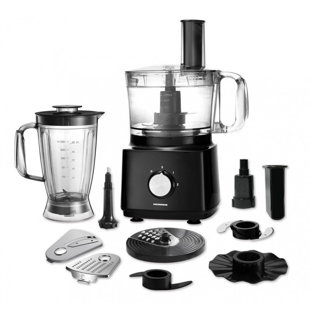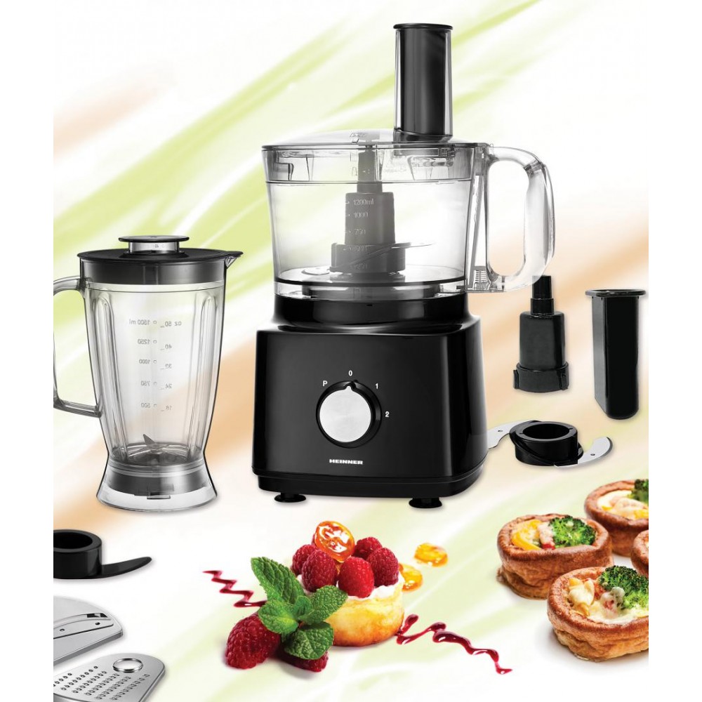 Robot de bucatarie Heinner HFP-750BK, putere: 750W, 2 viteze + Pulse, capacitate bol procesare: 1.2L, capacitate blender: 1.8L, accesorii pentru feliere, maruntire, unt si cartofi French, sistem de siguranta cu dubla inchidere, sistem anti-alunecare, nivel de zgomot: 85dB.