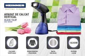 Aparat de calcat vertical HEINNER Black Tulip HGS-1600BK, putere maxima: 1630W, calcare verticala, talpa inox, jet de abur continuu, rezervor detasabil, perie pentru pulovere, debit de abur: 20g/min, capacitate rezervor apa: 250ml, negru.