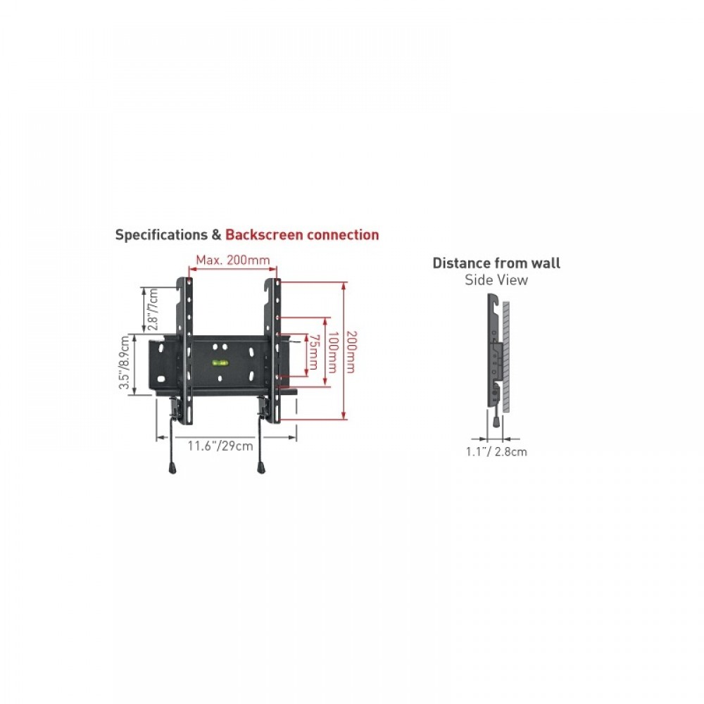 Suport perete LCD/Plasma 12" - 37" Fix, Barkan, Black, E20.B, VESA max 200x200, max. 40Kg| Caracteristici generale | |