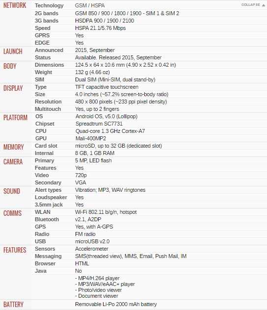 PA490130ROA1000M Vibe A DS Black 3G/4''/QC/512MB/4GB/0.3MP/5MP/1700mAh